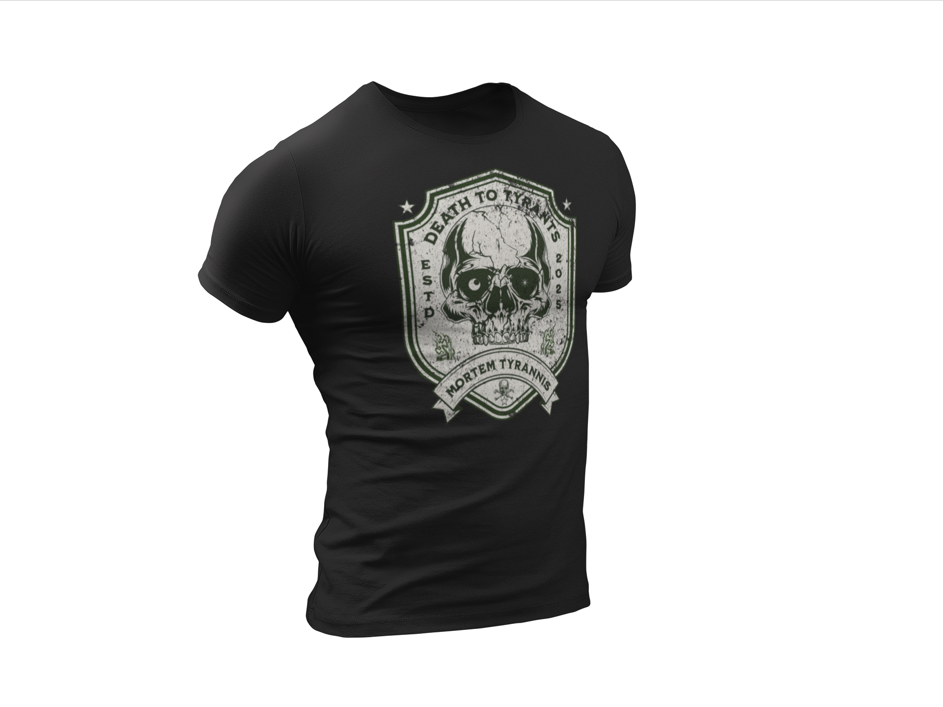 Ignite your rebellion with the "Death to Tyrants" T-Shirt! Inspired by the spirit of ancient Rome, where the cry "Mortem Tyrannis" echoed after Julius Caesar’s fall in 44 BC, this fierce skull emblem—established 2025—stands against oppression. Proudly Made in the USA with top-quality craftsmanship, it’s your badge of freedom. Seize yours now!