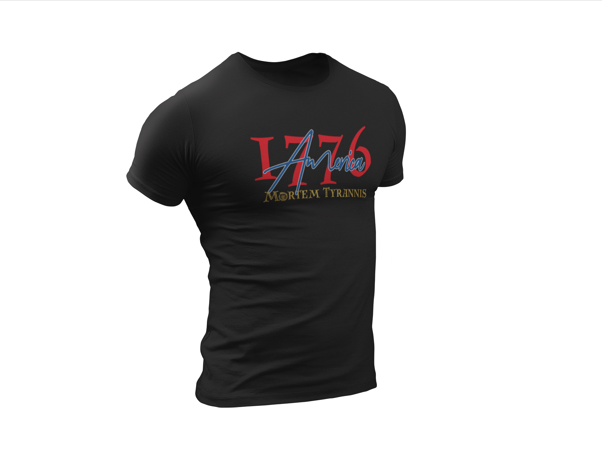 Lead a new revolution with this bold, eye-catching T-shirt showcasing a striking design with "1776" and "America" in powerful, standout lettering, paired with the defiant Latin phrase "Mortem Tyrannis" (Death to Tyranny) for an unmissable statement. Crafted from top-tier materials, it delivers a rugged, comfortable fit and unbeatable durability, ideal for making a statement anywhere, anytime. 100% made in America, this tee embodies fierce pride in craftsmanship and heritage. Available in multiple colors to match your bold style.